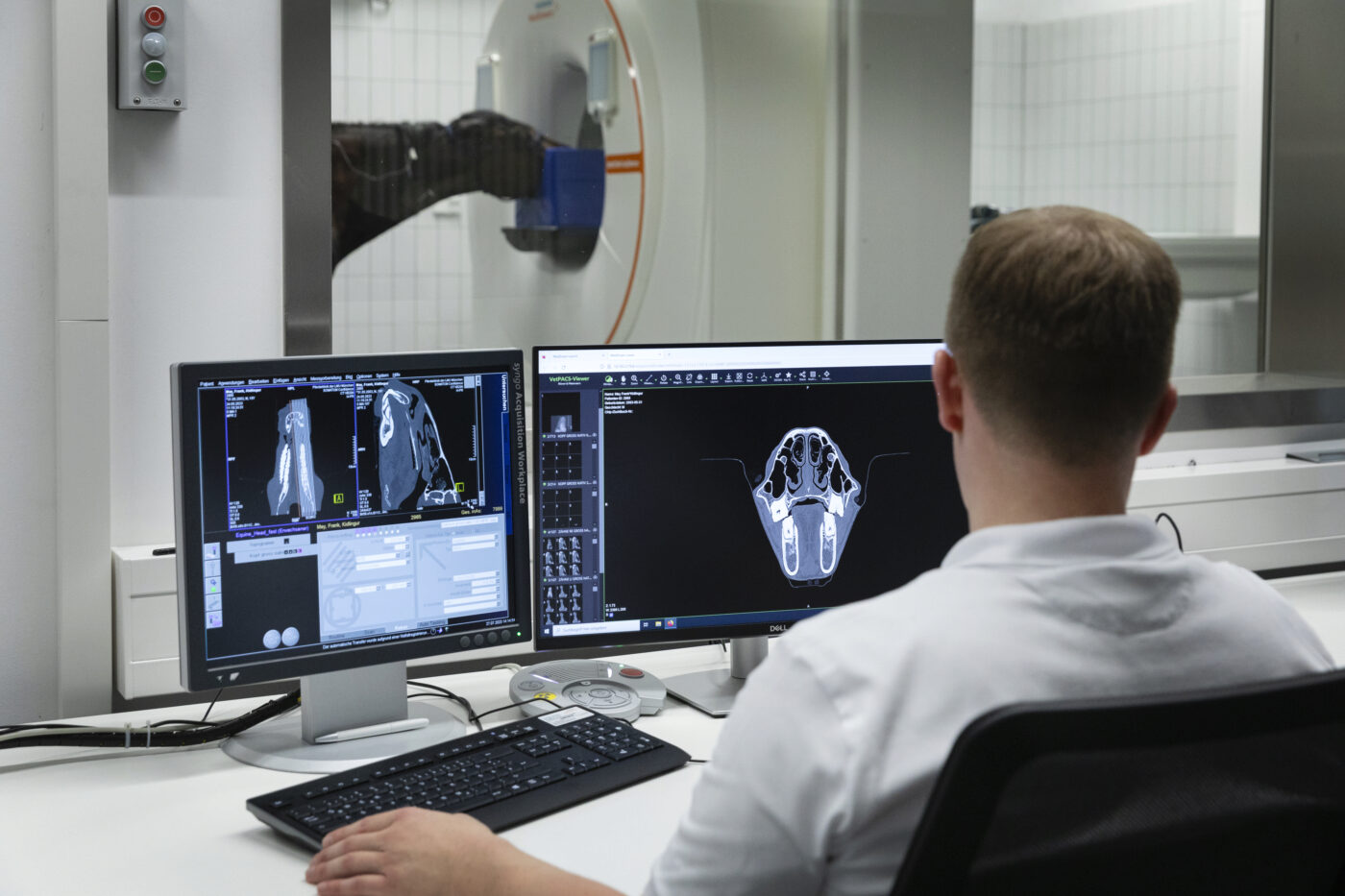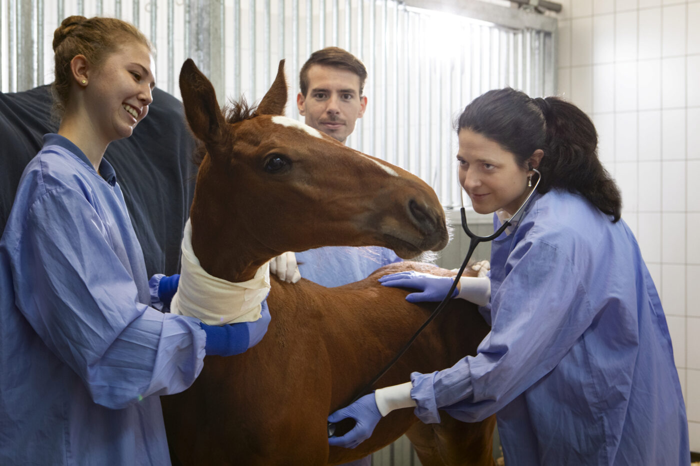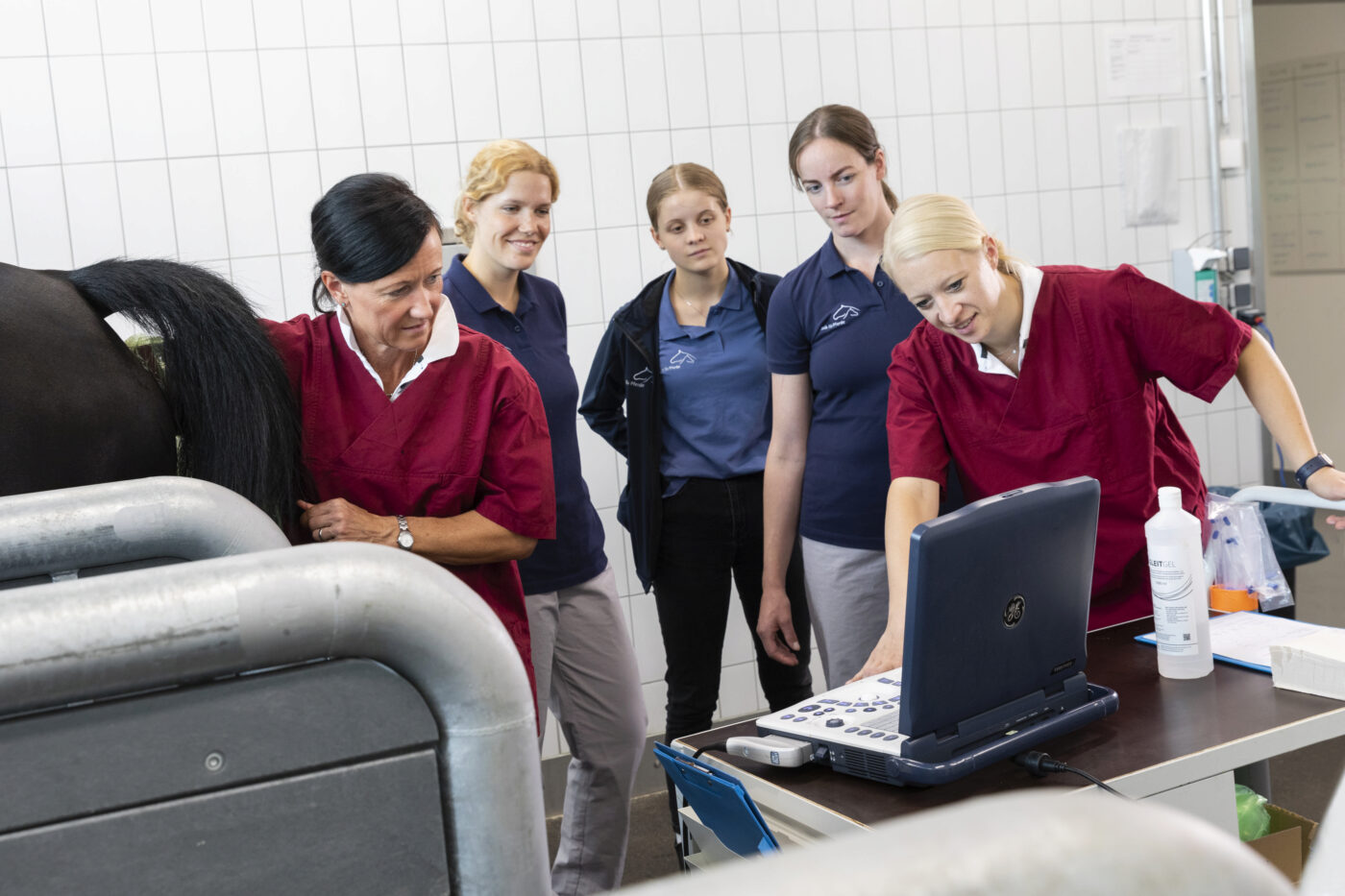 Unser Teamgeist ist enorm, sodass es uns gelingt, gemeinsam fachlich und technisch auf höchstem Niveau zu arbeiten und auch globale Entwicklungsmöglichkeiten zu fördern. Zudem haben wir national und international anerkannte Oberärztinnen und Oberärzte in allen Fachbereichen der Pferdemedizin, die den Assistenzärztinnen und Assistenzärzten immer für Rückfragen zur Verfügung stehen. Auch bei der Röntgenvisite, dem Journal Club und dem Dissertantenseminar steht unser Wissensaustausch niemals still.
