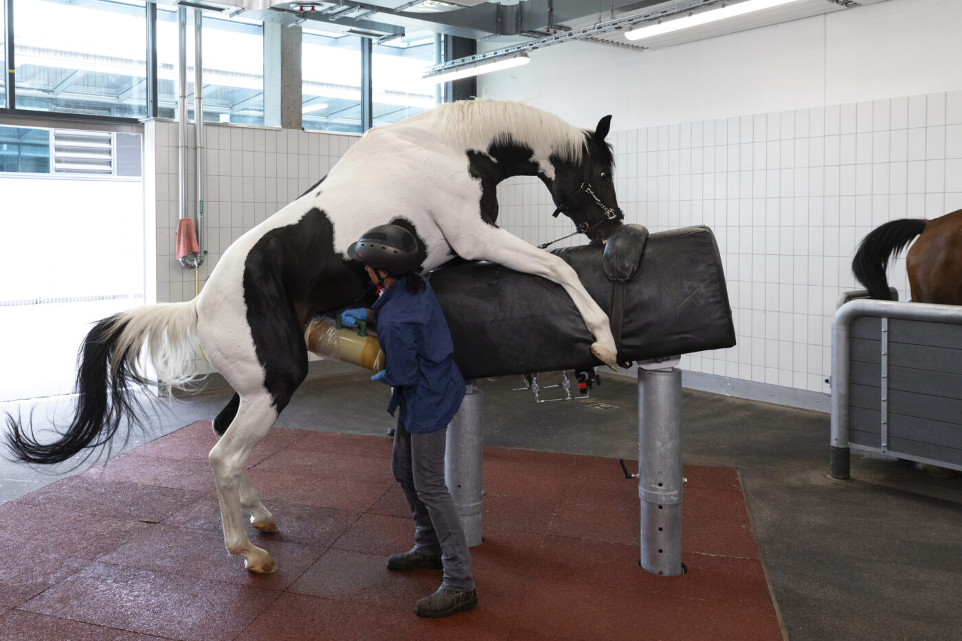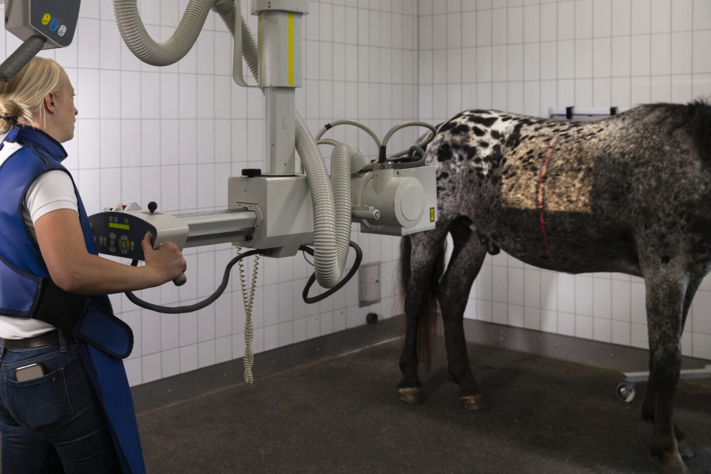 Unsere Ausstattung umfasst einen Embryotransfer und eine Besamungsstation, Endoskopie inklusive Overgroundendoskopie, hochmoderne Bildgebung (CT, MRT, C-Bogen, diverse Ultraschallgeräte und Röntgen), 3 moderne Operationssäle, 3 Untersuchungsräume, Isolationseinheit mit 4 Boxen, Fohlenintensivstation mit 2 Stuten-/ Fohlenboxen, Hufschmiede, 4 Klinikpferde für die Lehre, zur Forschung und als Blutspender.